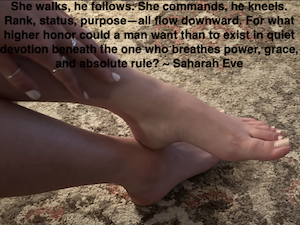 Every slave in a Female-led home should mediate on the following: Adjust your attitude to your Mistress’s way of thinking. Servitude to Her is not about what you get, it is about what you give. Servitude to Her demands sacrifice. Real sacrifice engenders inner peace and happiness in the one sacrificing; therefore, make everything…